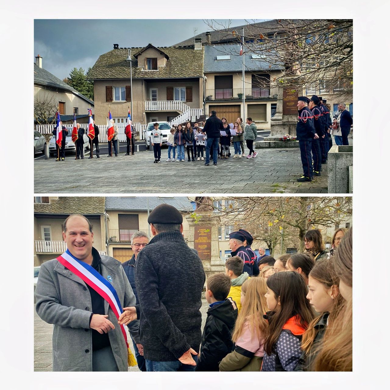 Devant le monument aux morts les enfants ont interprété 2 chants : « la Marseillais » et « le soldat ». Ces chants avaient été préparés et ont été interprétés avec M Laversanne.